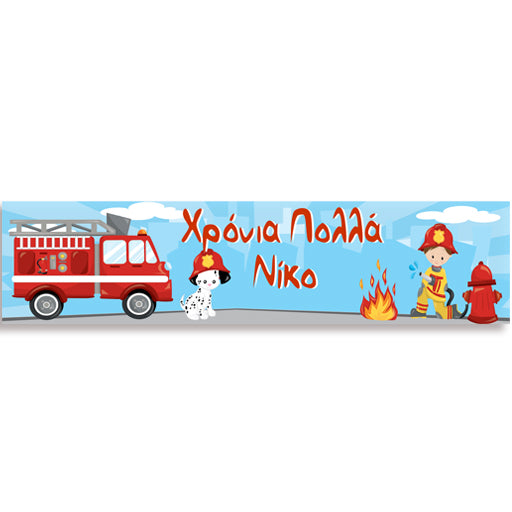 Banner με θέμα την Πυροσβεστική, και τυπωμένο το μήνυμα της επιλογής σας! Μπορεί να χρησιμοποιηθεί ως runner για τη διακόσμηση του τραπεζιού ή ως banner στην πόρτα ή τον τοίχο.