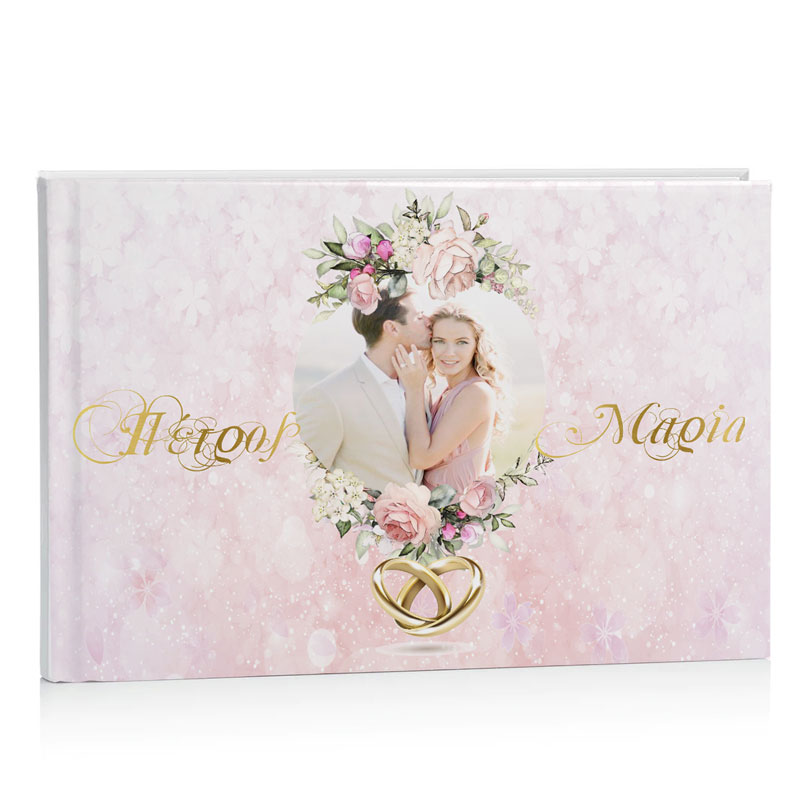 Εντυπωσιακό, χειροποίητο Βιβλίο Ευχών σε ρομαντικές ροζ αποχρώσεις floral και τα ονόματα του ζευγαριού. Κρατήστε για πάντα τις ευχές των καλεσμένων σας σε ένα όμορφο ευχολόγιο.