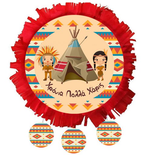 • Από την πινιάτα κρέμονται 3 στρογγυλά διακοσμητικά από χαρτόνι με τύπωμα στο θέμα της πινιάτας