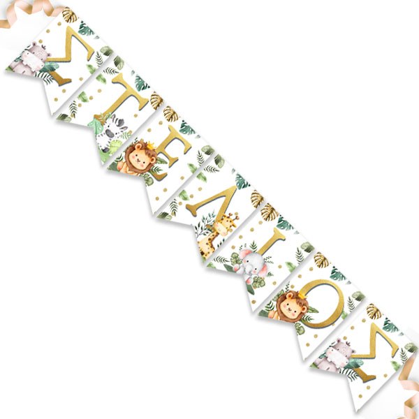 Σημαιάκια με το όνομα του μωρού σας και θέμα το Σαφάρι - Ζώα της Ζούγκλας, για να διακοσμήσετε το χώρο της βάπτισης ή του πάρτυ!