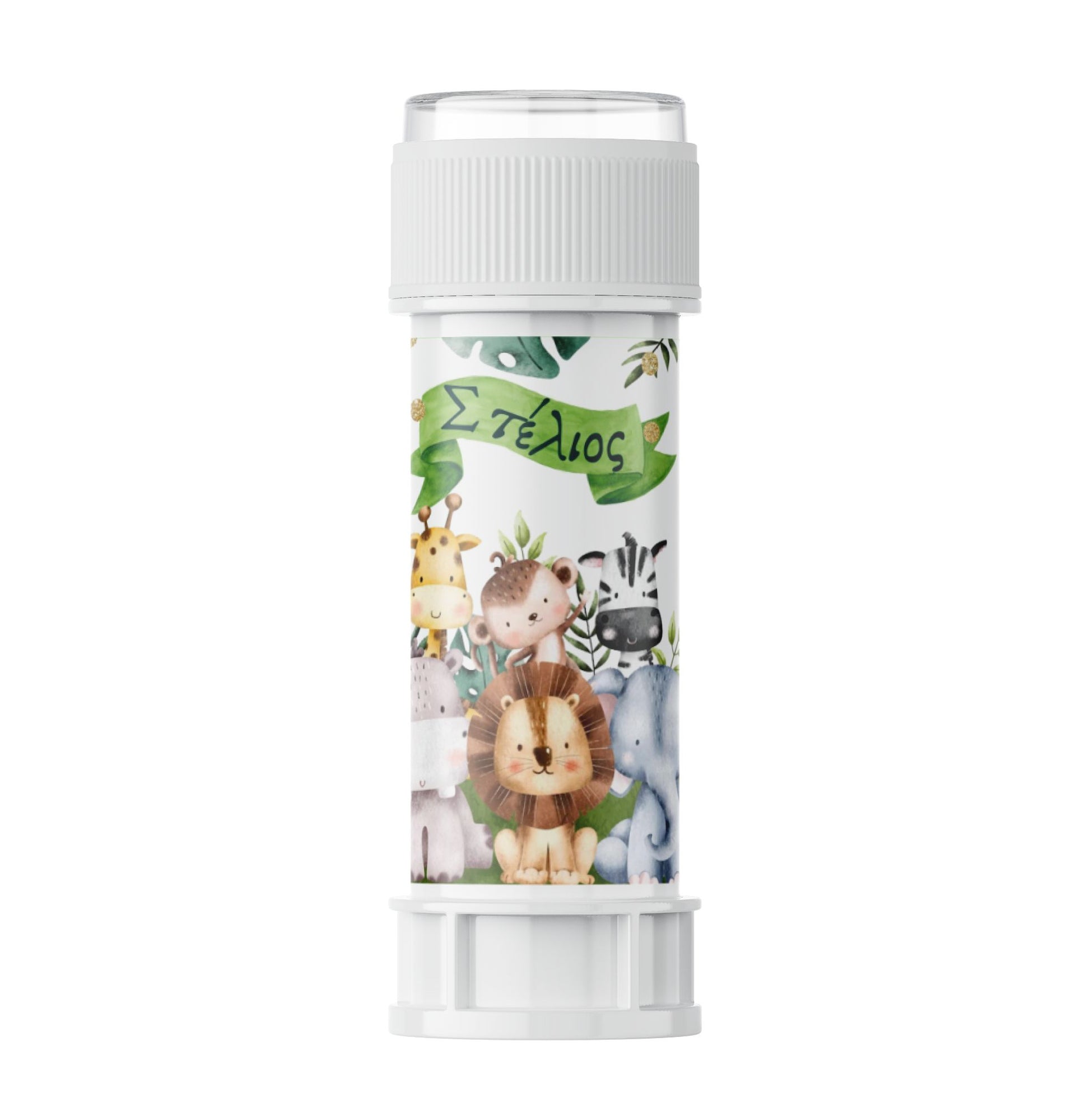 Προσωποποιημένες σαπουνόφουσκες με χάρτινο περιτύλιγμα Σαφάρι, για να χαρίσετε ως δωράκι στα παιδάκια του πάρτυ.