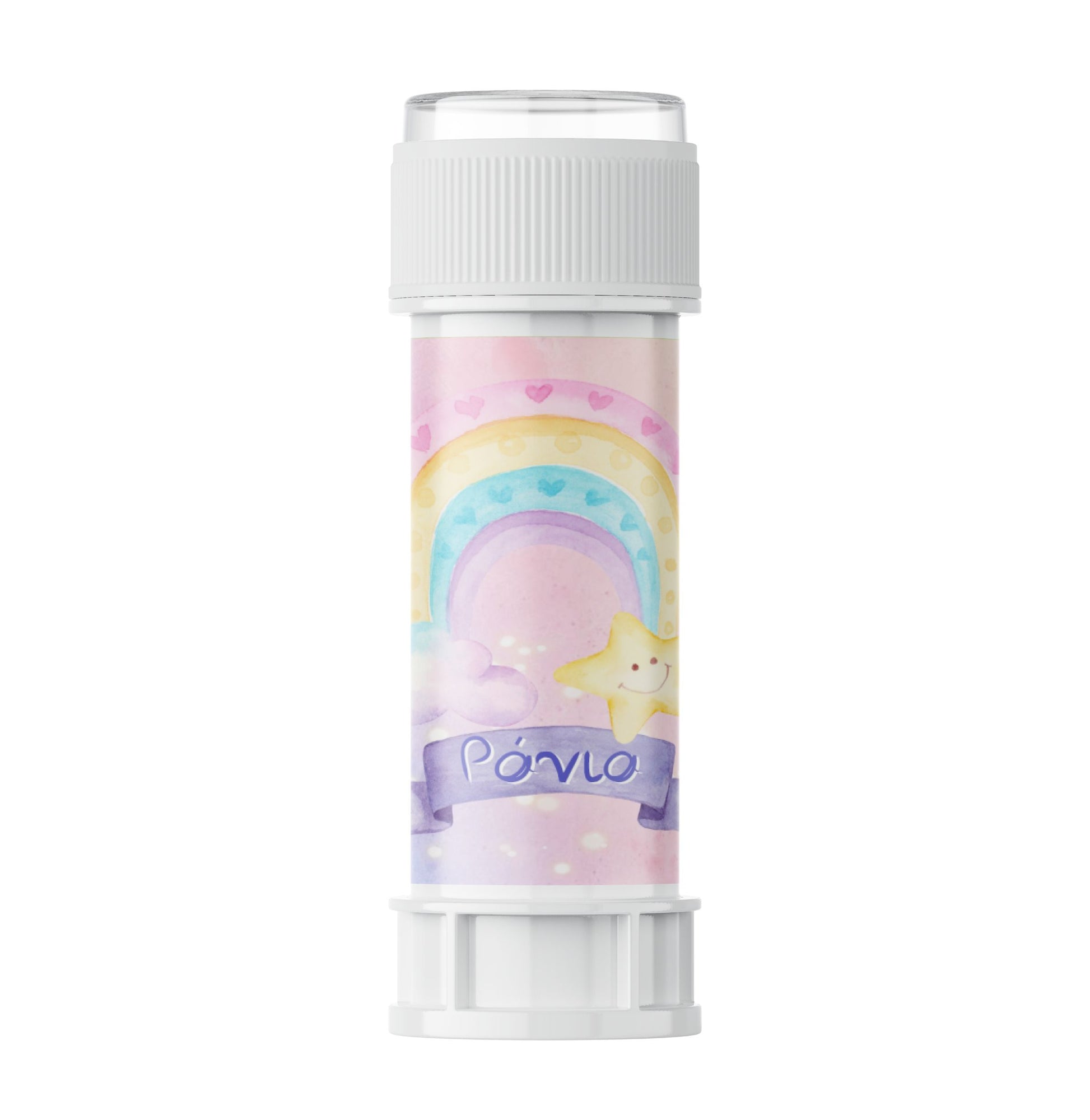 Προσωποποιημένες σαπουνόφουσκες με χάρτινο περιτύλιγμα Ουράνιο Τόξο, για να χαρίσετε ως δωράκι στα παιδάκια του πάρτυ.