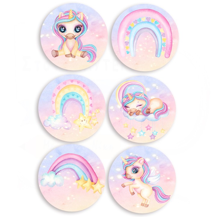 Κονκάρδες με θέμα το Ουράνιο Τόξο και το γλυκό Μονοκεράκι, ιδανικές για μπομπονιέρα, για δωράκι στους καλεσμένους ή για να διακοσμήσετε με αυτές τα αγαπημένα σας αντικείμενα!