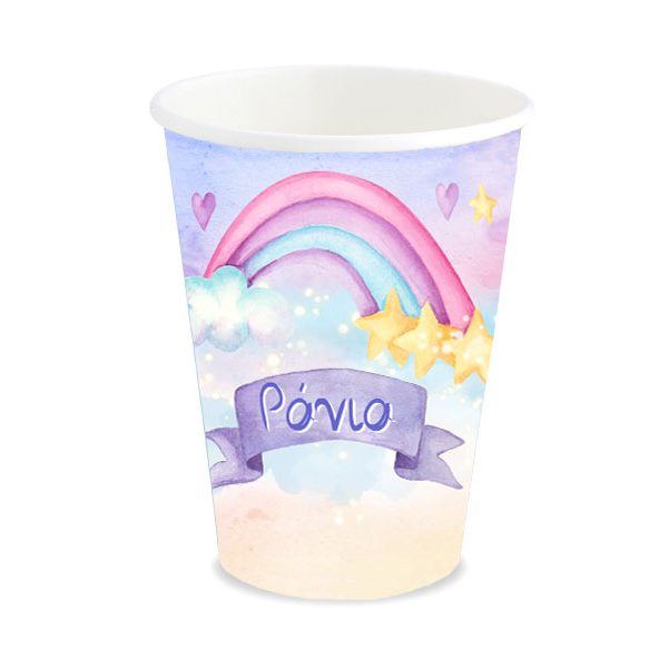 Ποτηράκια με το όνομα της μικρής σας και θέμα το Ουράνιο Τόξο , για να κεράσετε τους καλεσμένους σας στο τραπέζι του πάρτυ ή της βάπτισης!