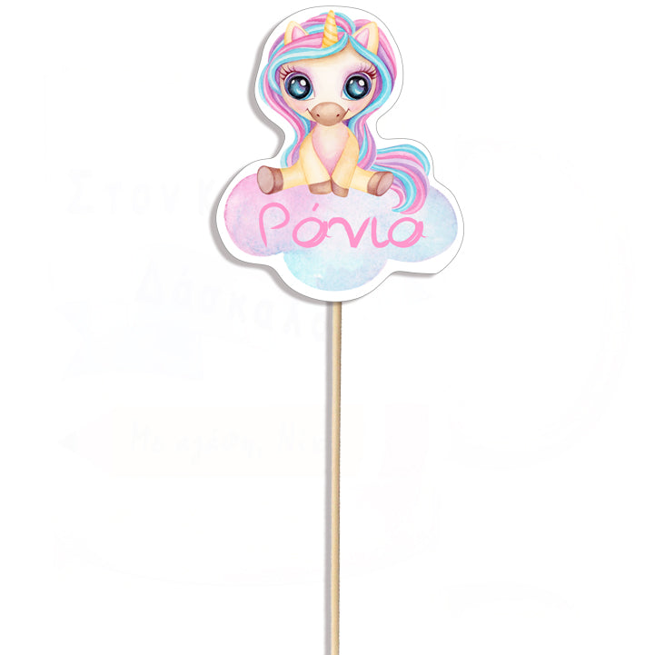 Στολίστε το Candy Bar ή τα τραπέζια με στικάκια γλυκό Μονοκεράκι στα χρώματα του Ουράνιου Τόξου και το όνομα του μικρού σας!