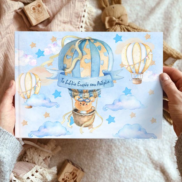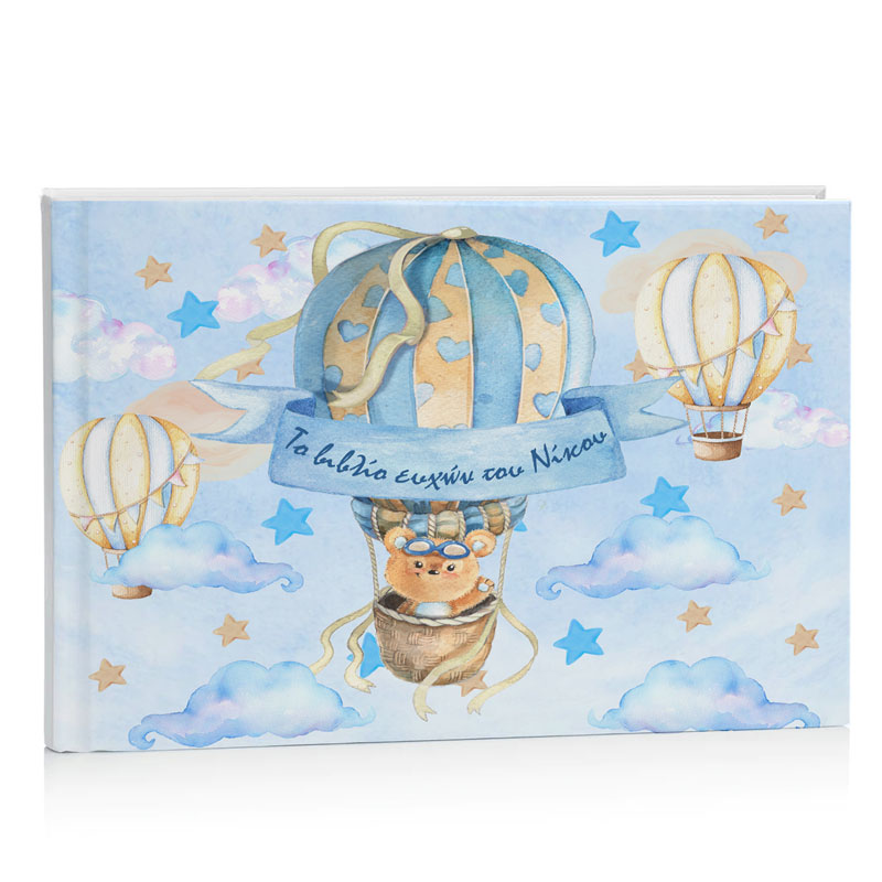 Εντυπωσιακό, χειροποίητο Βιβλίο Ευχών με θέμα το Αερόστατο, για τη Βάπτιση του μωρού σας! Κρατήστε για πάντα τις ευχές των καλεσμένων σας σε ένα όμορφο ευχολόγιο.
