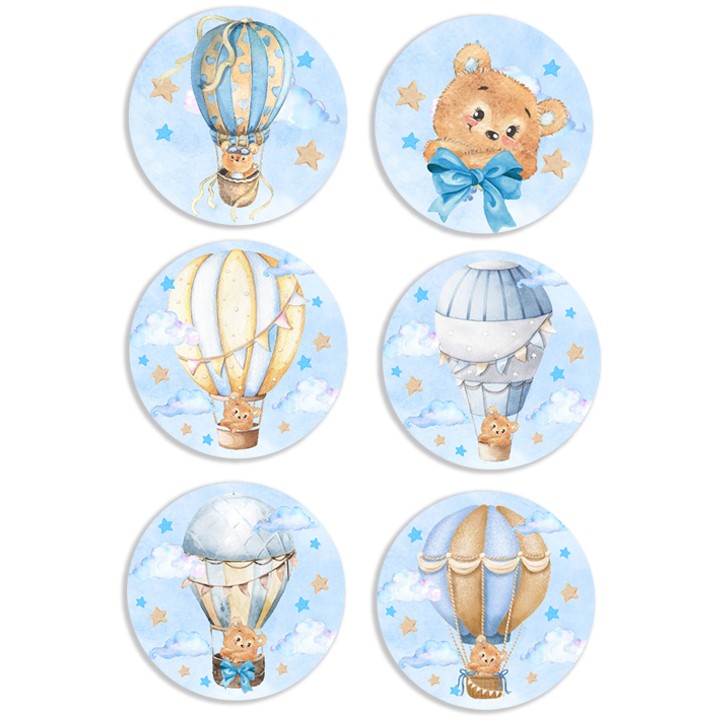 Σετ κονκάρδες Αερόστατο σε 6 διαφορετικά σχέδια. Φορέστε τις στο πάρτι γενεθλίων, στη θεματική βάπτιση ή διακοσμήστε τα αγαπημένα σας αντικείμενα!