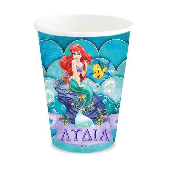 Ποτηράκια με το όνομα της μικρής σας με θέμα την αγαπημένη μικρή γοργόνα, για να κεράσετε τους καλεσμένους σας στο τραπέζι του πάρτυ!