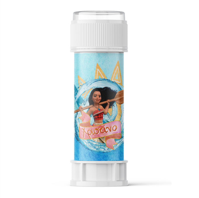 Προσωποποιημένες σαπουνόφουσκες με χάρτινο περιτύλιγμα Μοάνα, για να χαρίσετε ως δωράκι στα παιδάκια του πάρτυ.