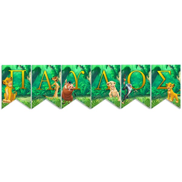 Διακοσμητικά σημαιάκια με το όνομα του παιδιού και θέμα το Βασιλιά των Λιονταριών!
