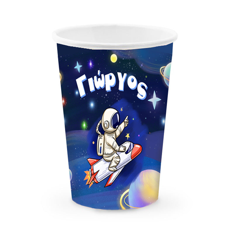 Ποτηράκια με το όνομα του παιδιού και θέμα το Διάστημα, για να κεράσετε τους καλεσμένους σας στο τραπέζι του πάρτυ!