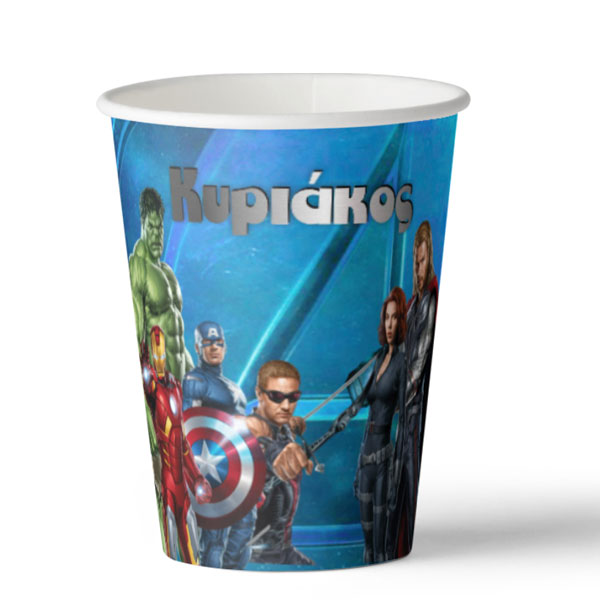 Ποτηράκια με το όνομα του παιδιού και θέμα τους αγαπημένους του Σούπερ ήρωες, για να κεράσετε τους καλεσμένους σας στο τραπέζι του πάρτυ!