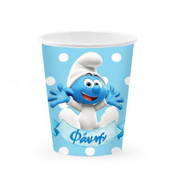 Προσωποποιημένα ποτηράκια με τα αγαπημένα Στρουμφάκια, για το τραπέζι του πάρτυ ή της βάπτισης.