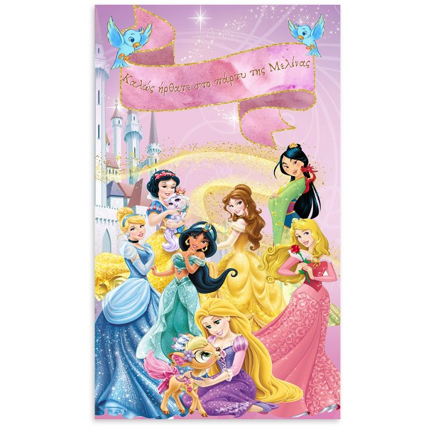 Μεγάλη αφίσα με τις αγαπημένες Πριγκίπισσες της μικρής σου  και εκτυπωμένο το μήνυμα που επιθυμείτε, για να διακοσμήσετε το χώρο του πάρτυ!