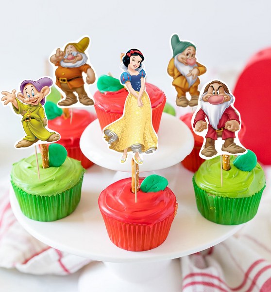 Topper-Οδοντογλυφίδες για να στολίσετε τα ζαχαρωτά και τα cupcake του μπουφέ με θέμα τη Χιονάτη και τους 7 νάνους.
