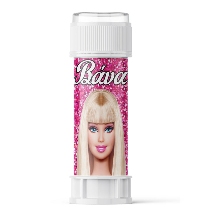 Προσωποποιημένες σαπουνόφουσκες με χάρτινο περιτύλιγμα Barbie, για να χαρίσετε ως δωράκι στα παιδάκια του πάρτυ.