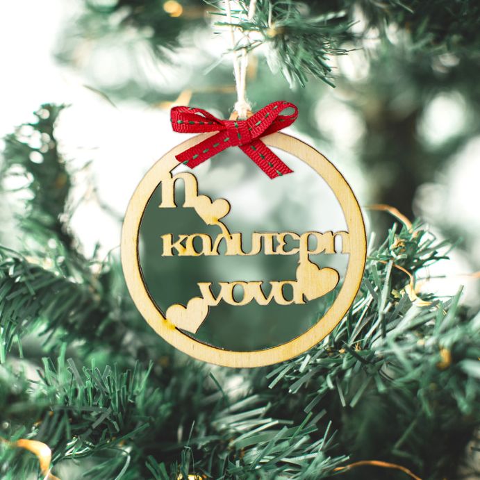Ξύλινο Χριστουγεννιάτικο Στολίδι Καλύτερη Νονά για να χαρίσετε στους αγαπημένους σας και να τους δείξετε πόσο πολύ τους νοιάζεστε!