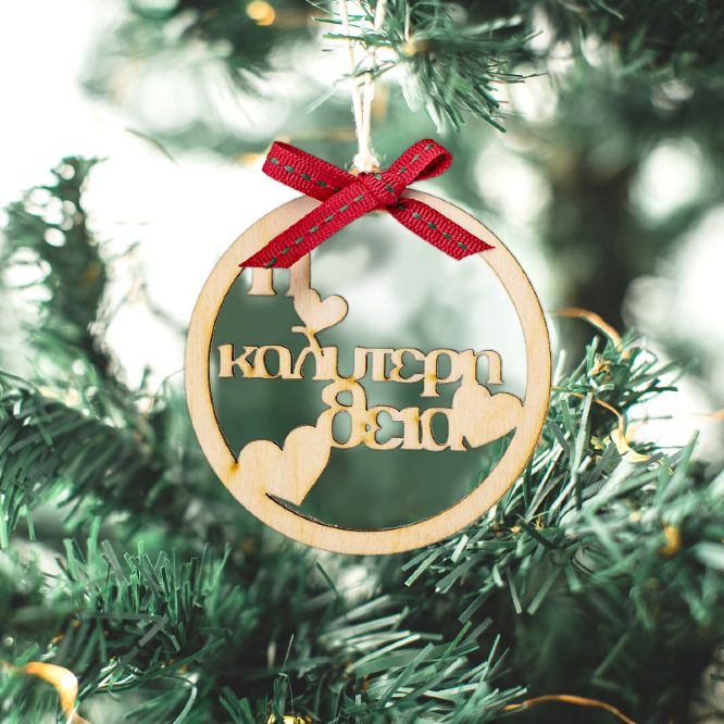 Ξύλινο Χριστουγεννιάτικο Στολίδι Καλύτερη Θεία για να χαρίσετε στους αγαπημένους σας και να τους δείξετε πόσο πολύ τους νοιάζεστε!