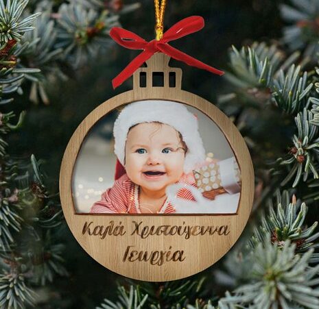 Ξύλινο σχηματικό Χριστουγεννιάτικο Στολίδι με Φωτογραφία για να χαρίσετε στους αγαπημένους σας και να τους δείξετε πόσο πολύ τους νοιάζεστε!