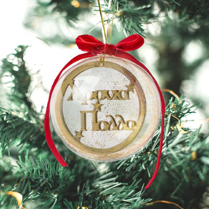 Χριστουγεννιάτικη Διάφανη Μπάλα "Χρόνια Πολλά" για να χαρίσετε στους αγαπημένους σας και να τους δείξετε πόσο πολύ τους νοιάζεστε!