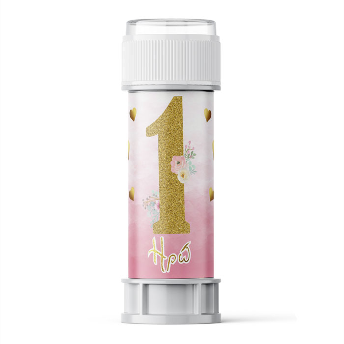 Προσωποποιημένες σαπουνόφουσκες με χάρτινο περιτύλιγμα 1st Birthday Girl, για να χαρίσετε ως δωράκι στα παιδάκια του πάρτυ.