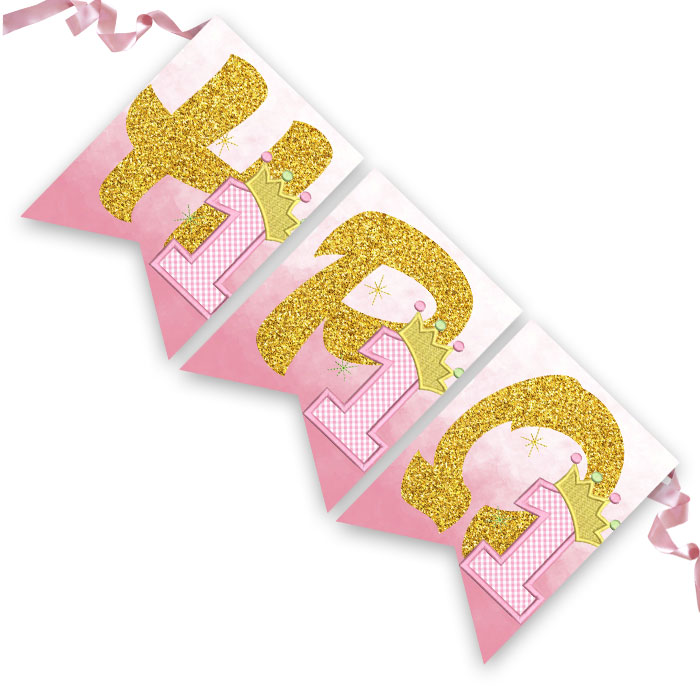 Σημαιάκια με όνομα και θέμα 1st Birthday Girl, για να διακοσμήσετε το χώρο του πάρτυ!