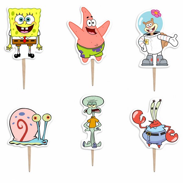 Topper-Οδοντογλυφίδες για να στολίσετε τα φαγητά και τα γλυκά του μπουφέ με τον Μπομπ Σφουγγαράκη και την παρέα του.