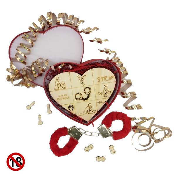 Η κλασσική τρίλιζα σε kinky παραλλαγή! Μία μεγάλη ξύλινη καρδιά με χαραγμένες τολμηρές εντολές πάνω στην τρίλιζα.Περιέχει: