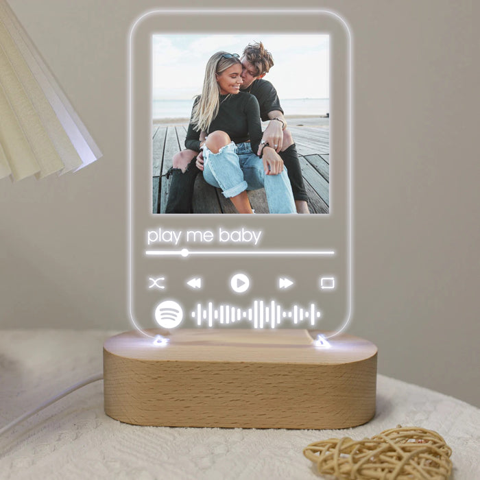 Εντυπωσιακό επιτραπέζιο φωτιστικό με τη φωτογραφία και το τραγούδι σας! Μόλις σκανάρετε το φωτιστικό με το κινητό σας, θα αρχίσει να παίζει το τραγούδι! Ένα μοναδικό δώρο για να χαρίσεις στο αγαπημένο σου πρόσωπο, που θα διακοσμεί το δωμάτιο και θα σε θυμίζει!
