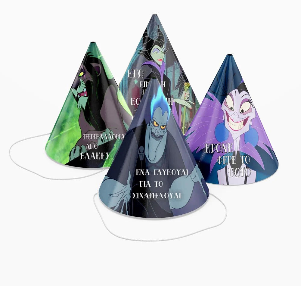 Μοιράστε στους καλεσμένους σας, καπελάκι πάρτυ με τους Disney Villains και τις πιο επικές ατάκες τους!