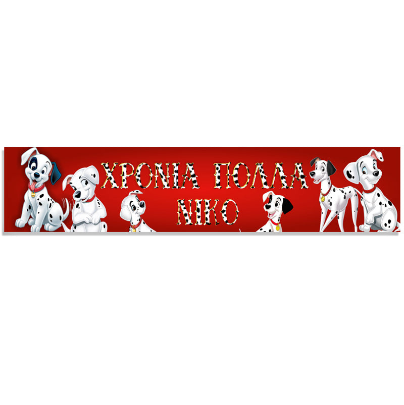 Banner με τα σκυλάκια της δαλματίας, και τυπωμένο το μήνυμα της επιλογής σας! Μπορεί να χρησιμοποιηθεί ως runner για τη διακόσμηση του τραπεζιού ή ως banner στην πόρτα ή τον τοίχο.
