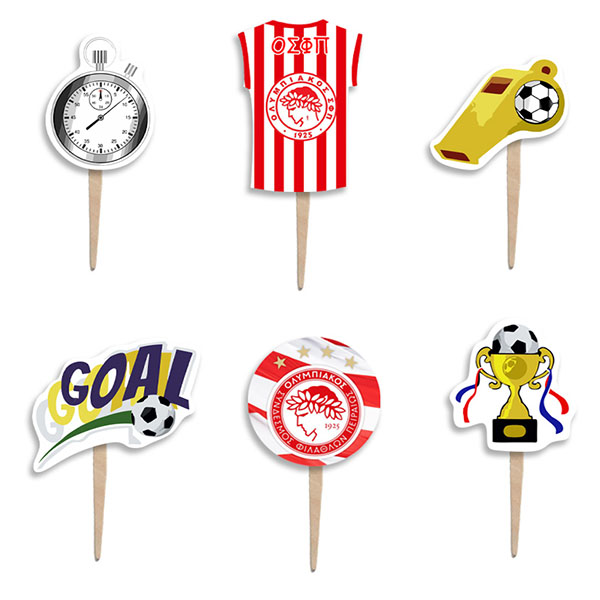 Topper-Οδοντογλυφίδες για να στολίσετε τα φαγητά και τα γλυκά του πάρτι, με θέμα τον Ολυμπιακό.