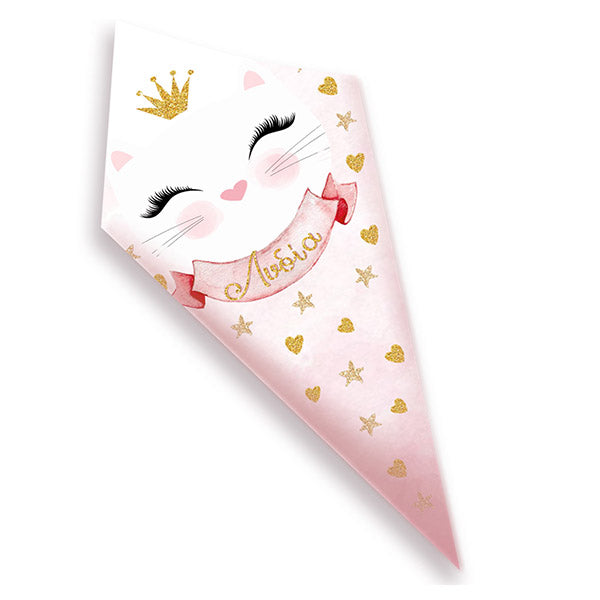 Στολίστε το candy bar ή το τραπέζι, με προσωποποιημένα χωνάκια ζαχαρωτών με θέμα Γατούλα, για να κεραστούν οι καλεσμένοι σας!