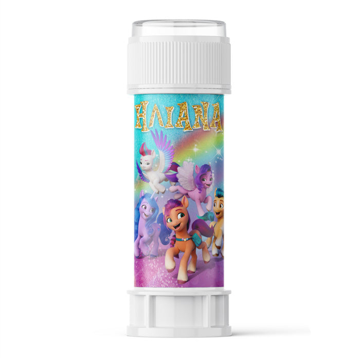 Προσωποποιημένες σαπουνόφουσκες με χάρτινο περιτύλιγμα με θέμα τα αγαπημένα Πόνυ, για να χαρίσετε ως δωράκι στα παιδάκια του πάρτυ.