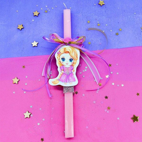 Εντυπωσιακή λαμπάδα πριγκίπισσα Ραπουνζέλ, με υπέροχα υλικά και κορδέλες!