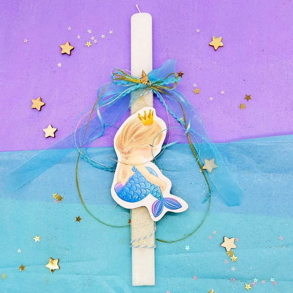 Λαμπάδα Γοργόνα, με υπέροχα υλικά και κορδέλες, που θα κλέψει τις εντυπώσεις και θα γεμίσει με χαμόγελα νονούς και παιδιά!