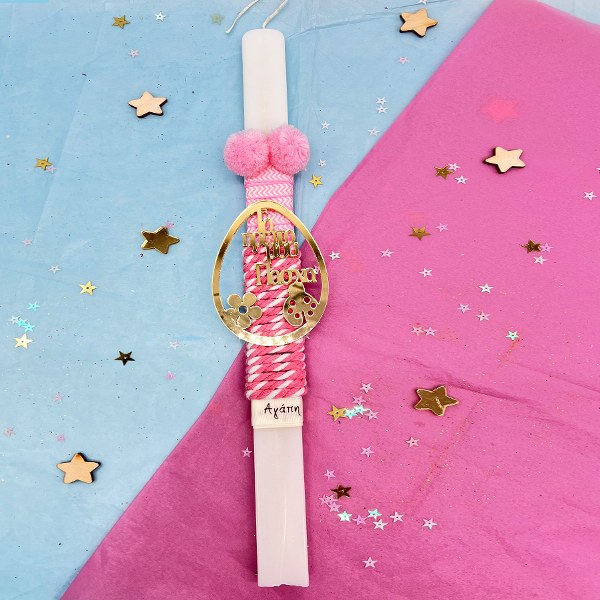 Εντυπωσιακή λαμπάδα "Το πρώτο μου Πάσχα" για κοριτσάκι, με χρυσό plexiglass διακοσμητικό!