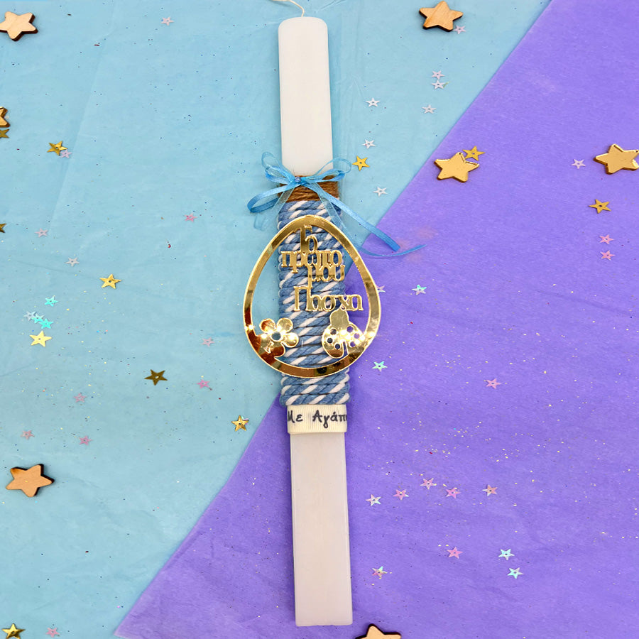 Εντυπωσιακή λαμπάδα "Το πρώτο μου Πάσχα" για αγοράκι, με χρυσό plexiglass διακοσμητικό!