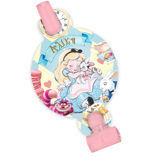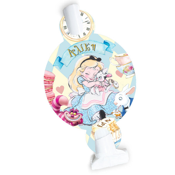 Προσωποποιημένα Blowouts με θέμα την Αλίκη στη Χώρα των Θαυμάτων, για να μοιράσετε στους καλεσμένους του πάρτυ και να τους βάλετε σε γιορτινή διάθεση!