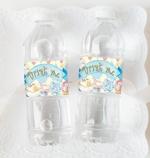 Προσωποποιημένες ετικέτες για μπουκαλάκια νερού με θέμα την Αλίκη στη χώρα των Θαυμάτων, για να κεραστούν οι καλεσμένοι σας!