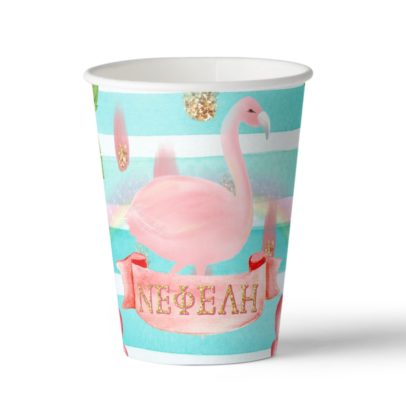 Προσωποποιημένα ποτηράκια με θέμα Φλαμίνγκο για το τραπέζι του θεματικού πάρτυ!
