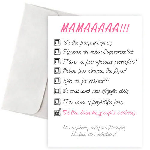Κάρτα για να εκφράσετε στη μαμά σας την ευγνωμοσύνη για όσα κάνει.. με χιουμοριστικό τρόπο!