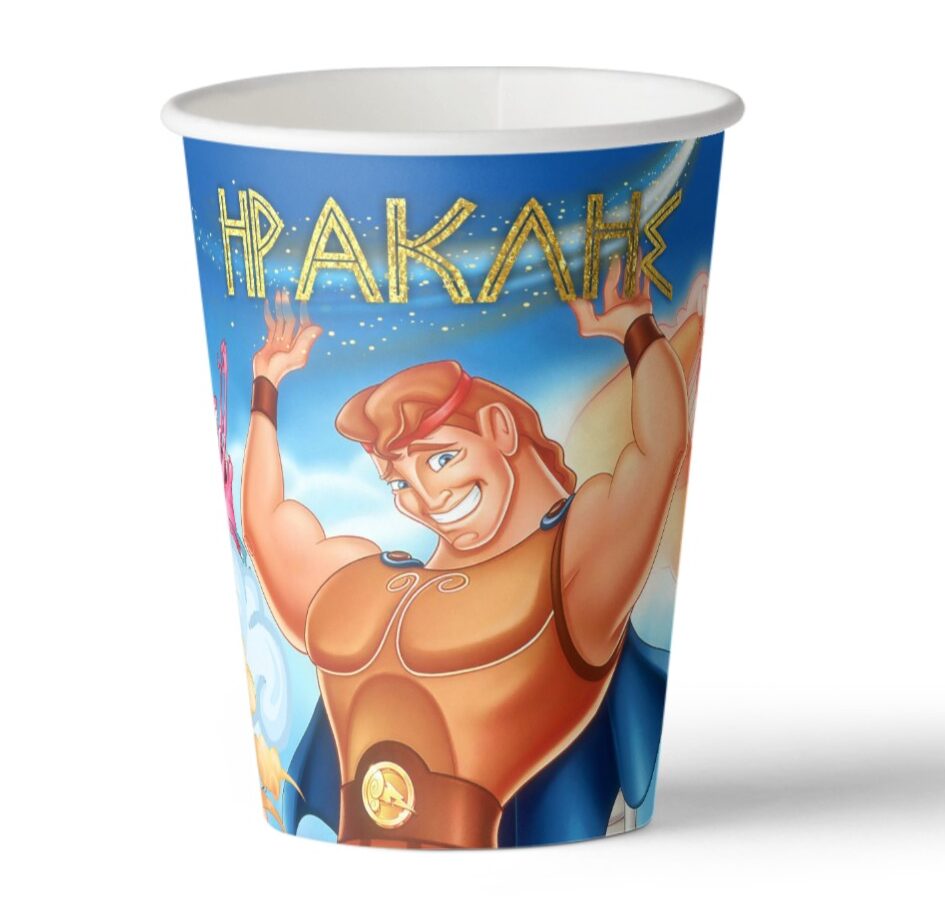 Ποτηράκια με το όνομα του μικρού σας και θέμα τον Ηρακλή, για να κεράσετε τους καλεσμένους σας στο τραπέζι του πάρτυ!