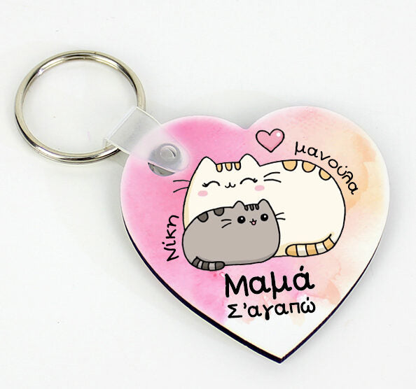 Μπρελόκ για τα κλειδιά σε σχήμα καρδιάς με χαριτωμένα γατάκια για να δωρίσετε στη μαμά σας.