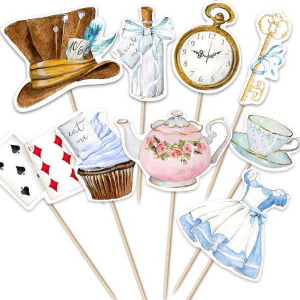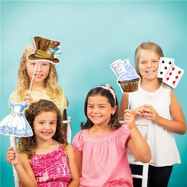 Έτοιμοι για φωτογραφίες;! Kit με Photobooth Props με θέμα την Αλίκη στη χώρα των Θαυμάτων, για να μοιράσετε σε μικρούς και μεγάλους καλεσμένους και να βγάλατε τις πιο fancy φωτογραφίες!