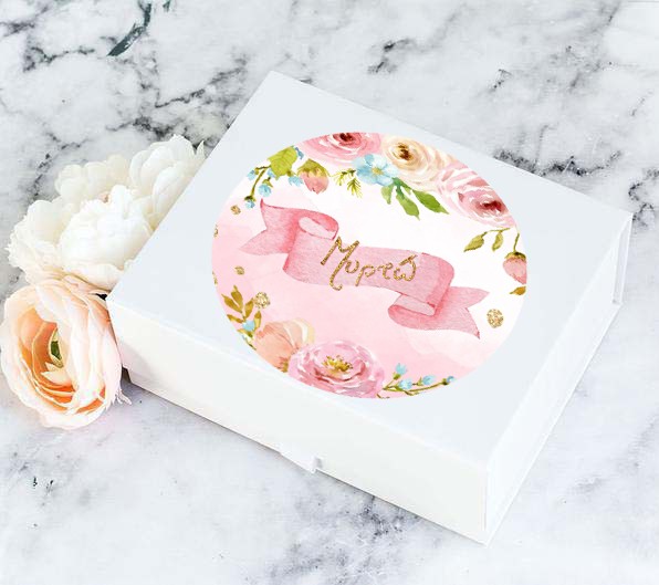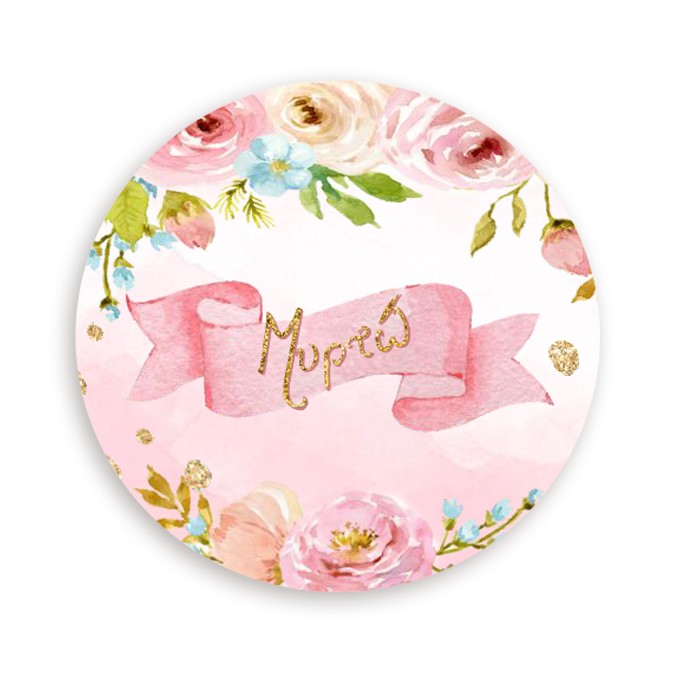 Στρογγυλά προσωποποιημένα αυτοκόλλητα με θέμα Φλοράλ. Μπορείτε να τα χρησιμοποιήσετε σε κουτάκια μπομπονιέρας, σε μπουκάλια και ποτήρια ή σε οποιοδήποτε άλλο αντικείμενο θέλετε να διακοσμήσετε για τη βάπτιση ή το πάρτυ.