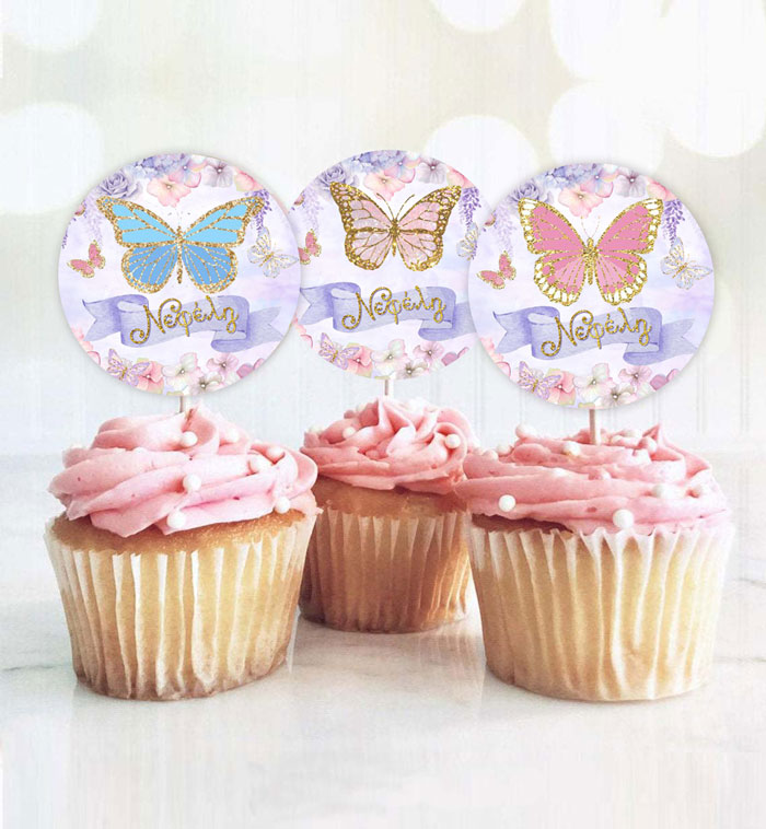 Topper-Οδοντογλυφίδες για να στολίσετε τα ζαχαρωτά και τα cupcake του μπουφέ με θέμα Πεταλούδα σε υπέροχες αποχρώσεις.