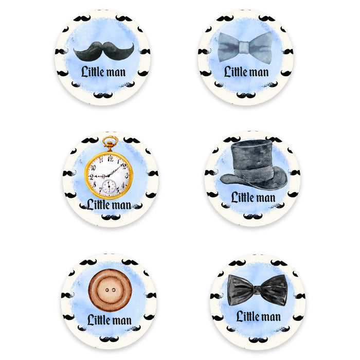 Κονκάρδες με θέμα Little Man, ιδανικές για δωράκι στους καλεσμένους ή για να διακοσμήσετε με αυτές τα αγαπημένα σας αντικείμενα!