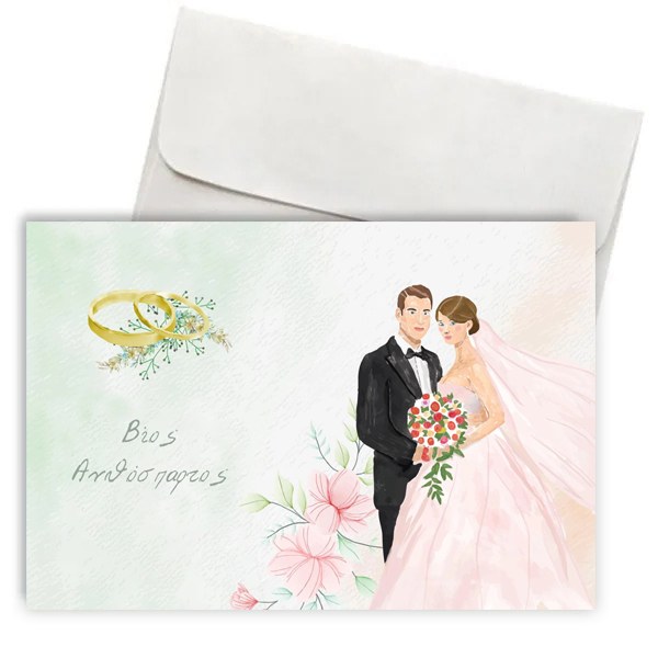Ευχητήρια κάρτα γάμου στα πιο μοντέρνα σχέδια. Γράψτε στους νεόνυμφους τις πιο θερμές ευχές σας, για ένα βίο ανθόσπαρτο!