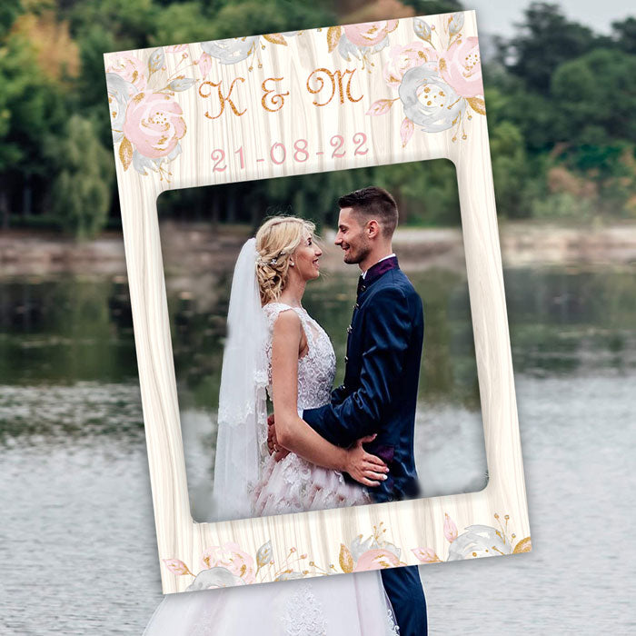 Κάδρο Photo Booth σε αποχρώσεις μπεζ, ροζ και χρυσό με γκλίτερ, μια όμορφη ιδέα για να διακοσμήσετε το χώρο του γάμου και ένα μοναδικό φόντο για τις φωτογραφίες σας!
